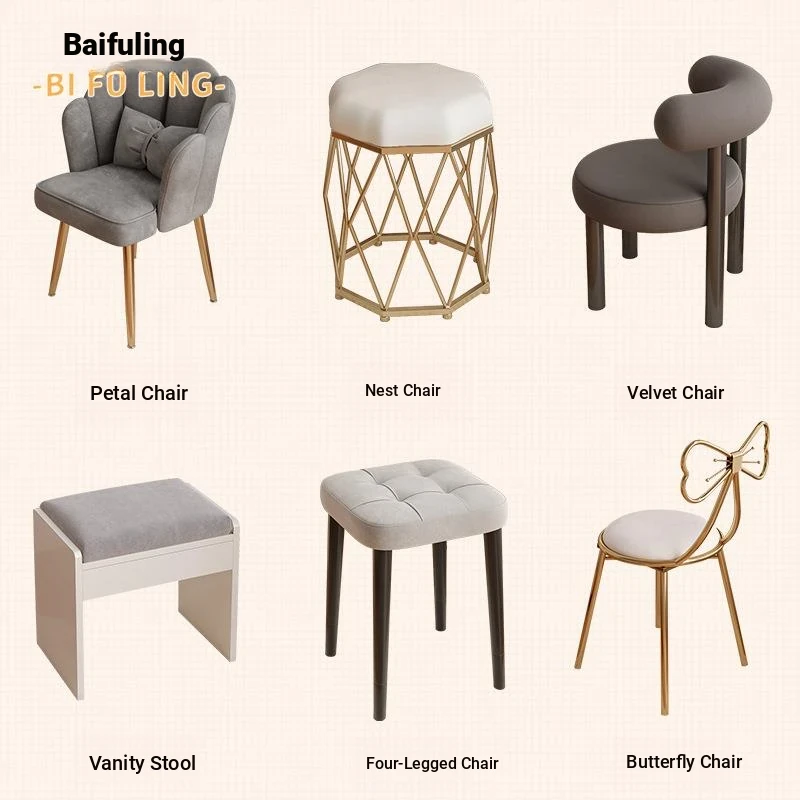 Elegant Makeup Chair for Home: Chic Vanity Stool with Backrest for Girls' Bedrooms, Nail Salons, and Dressing Rooms – Perfect for Instagram Influencers!
