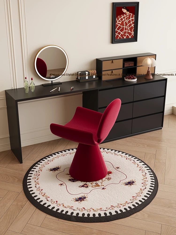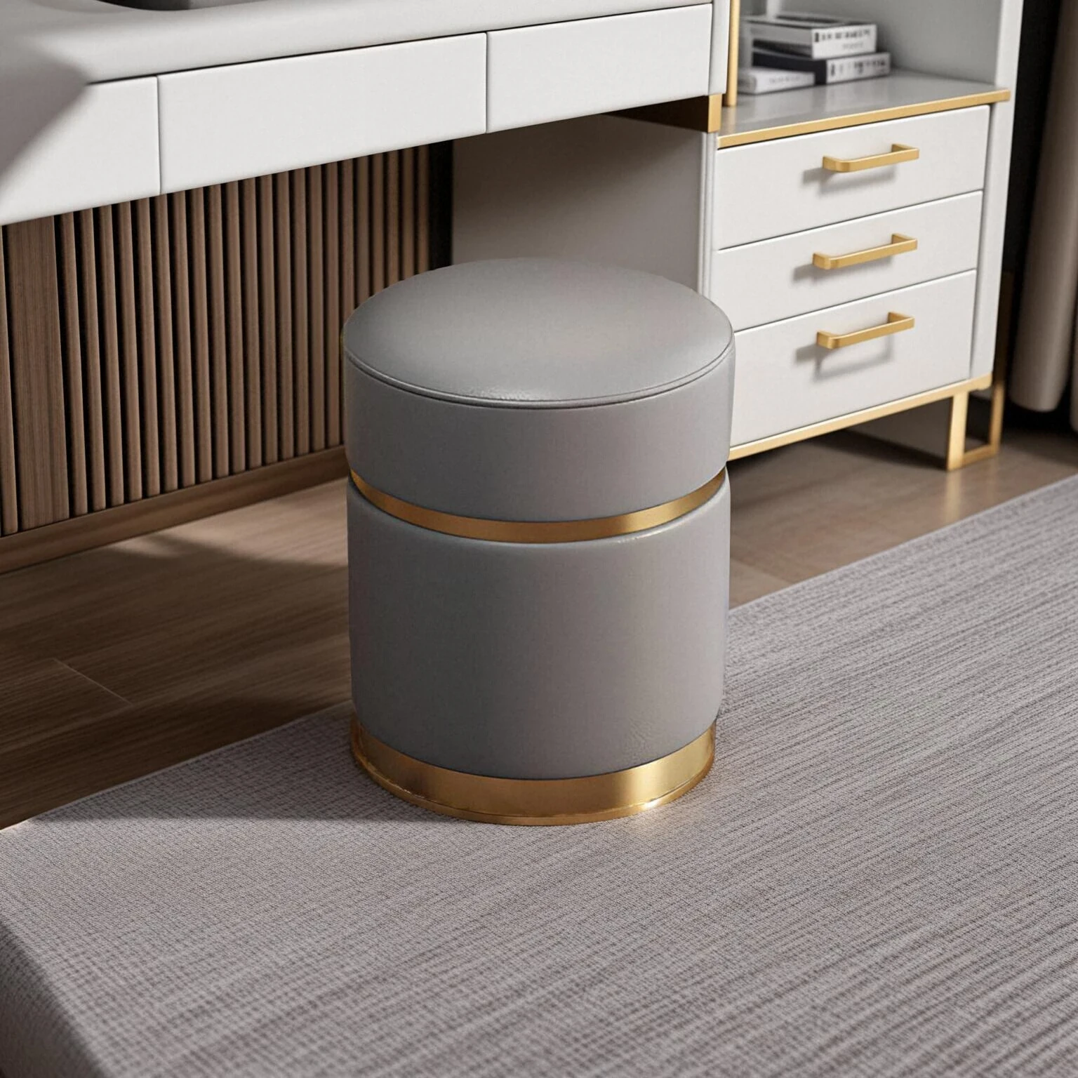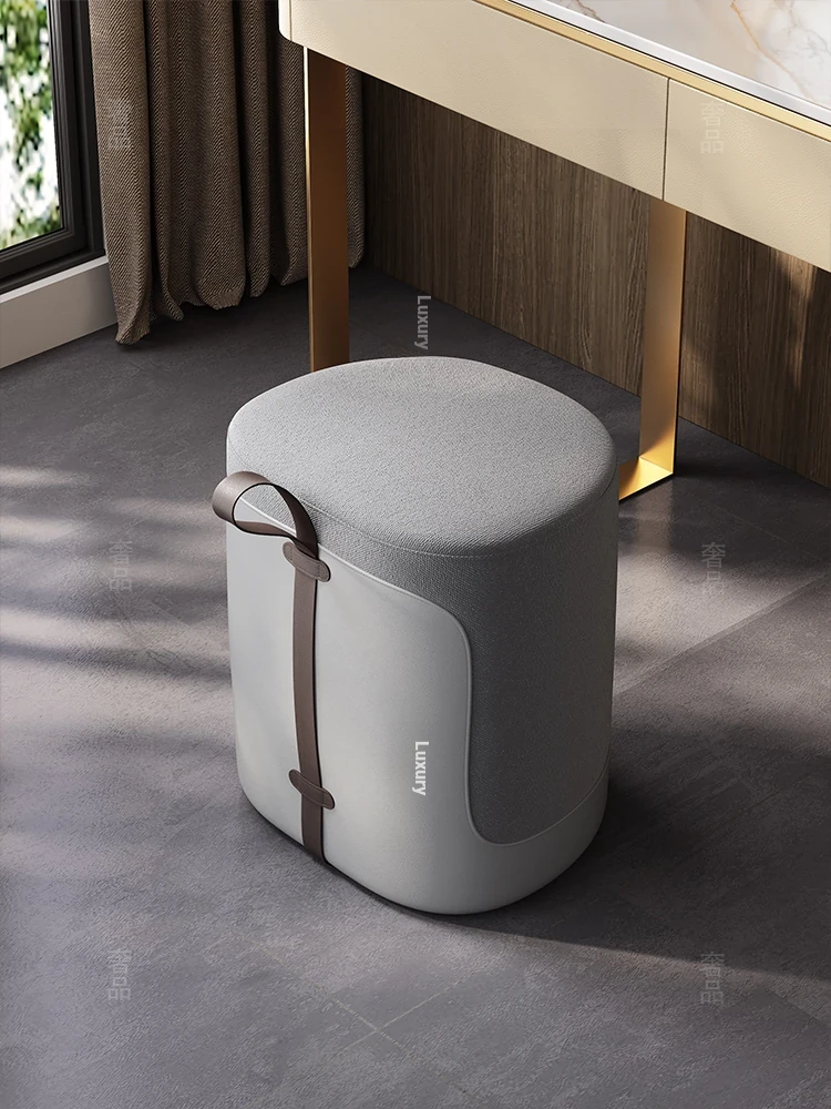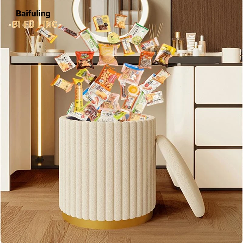 Modern Minimalist Makeup Stool - Round Storage Chair for Bedroom, Perfect for Vanity Tables, Stylish and Functional Design, Ideal for Influencers and Trendsetters.