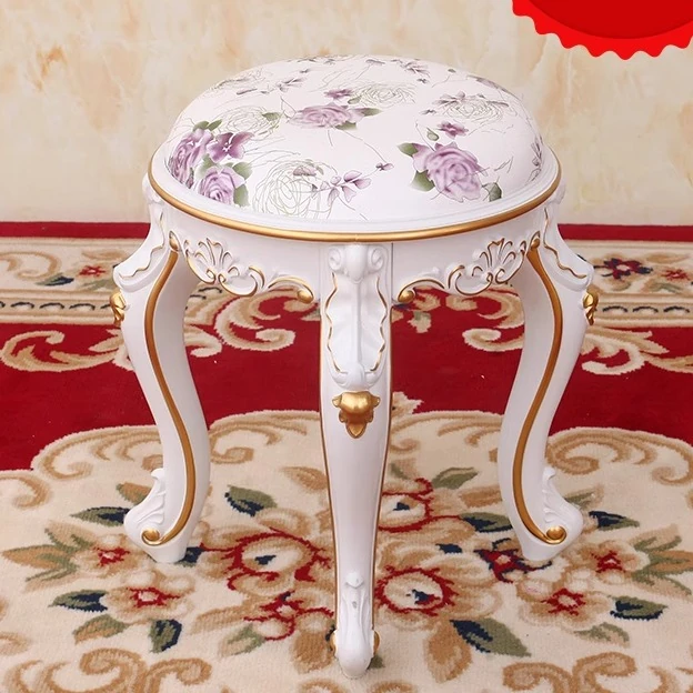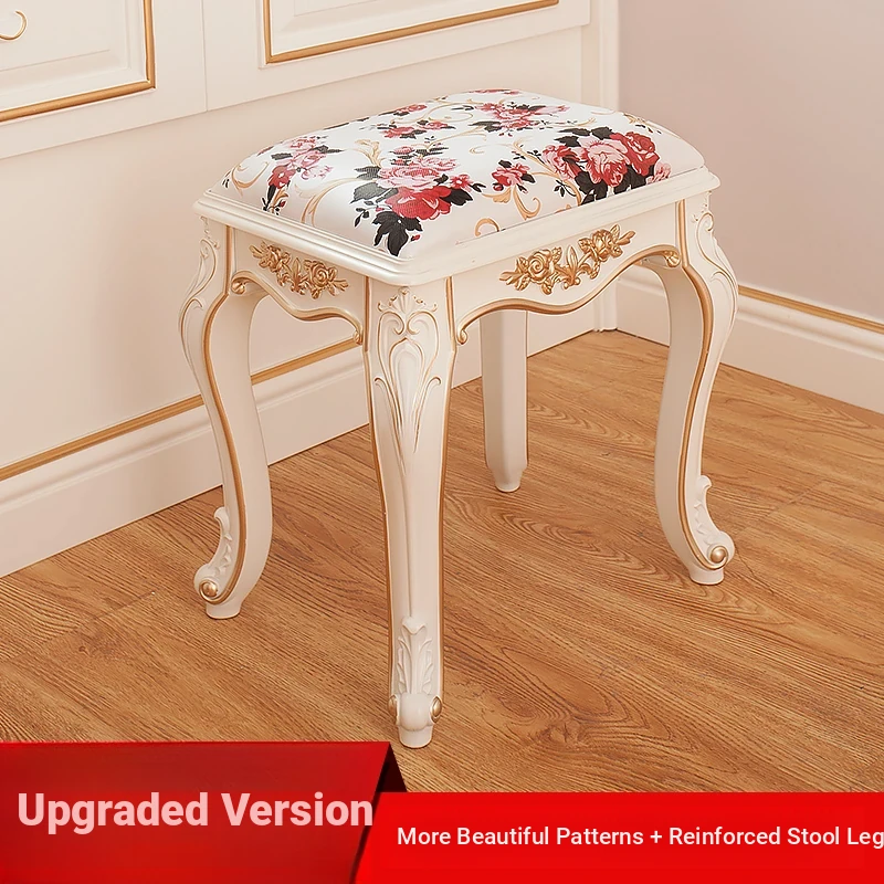 Elegant European Style Vanity Stool - Minimalist Faux Wood Makeup Chair for Nail Art and Bedroom - Modern Upholstered Shoe Bench and Small Accent Stool