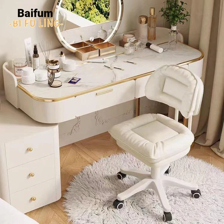 Elegant Modern Makeup Vanity Stool - High-End Design, Trendy and Minimalist, Made of Solid Wood, Rotating with Backrest, Perfect for Home Use