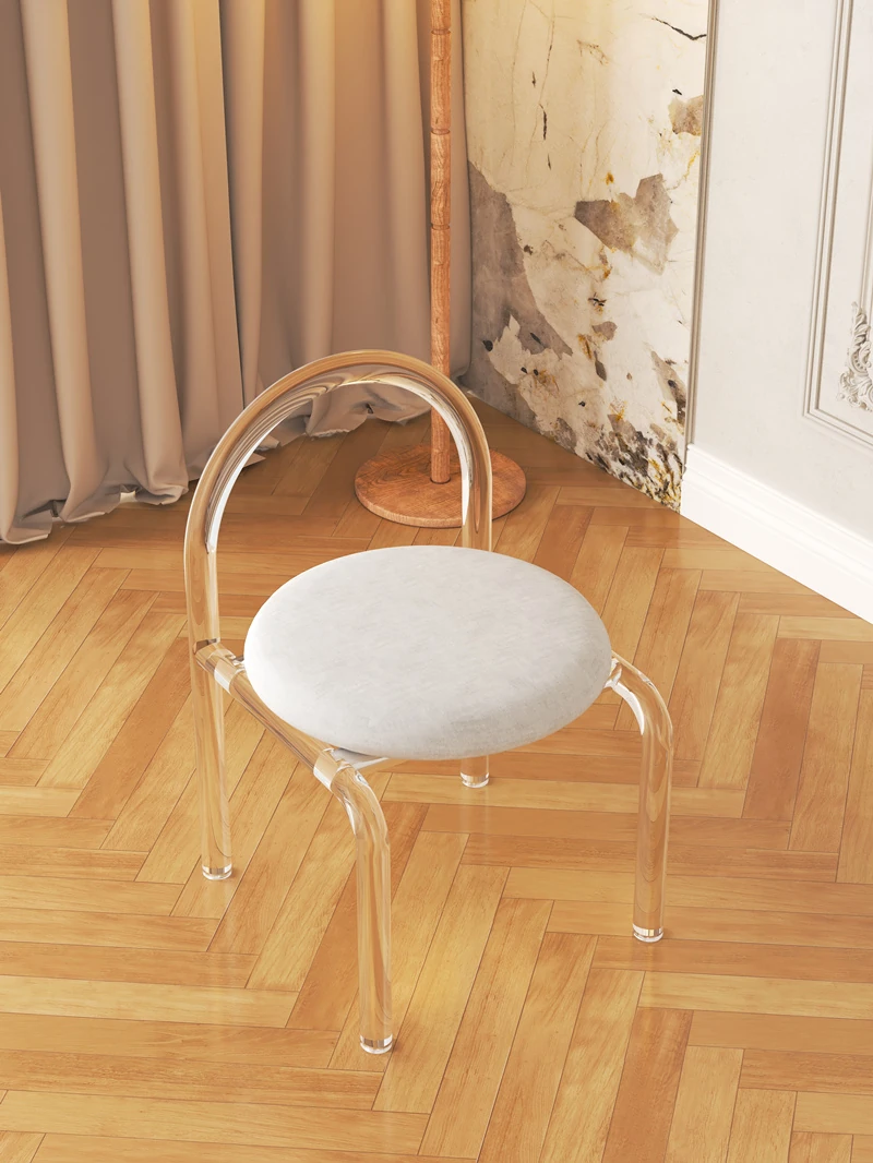 Trendy Acrylic Makeup Stool - Transparent Crystal Dining Chair for Home, Modern Minimalist Scandinavian Design, Chic and Elegant Vanity Seat