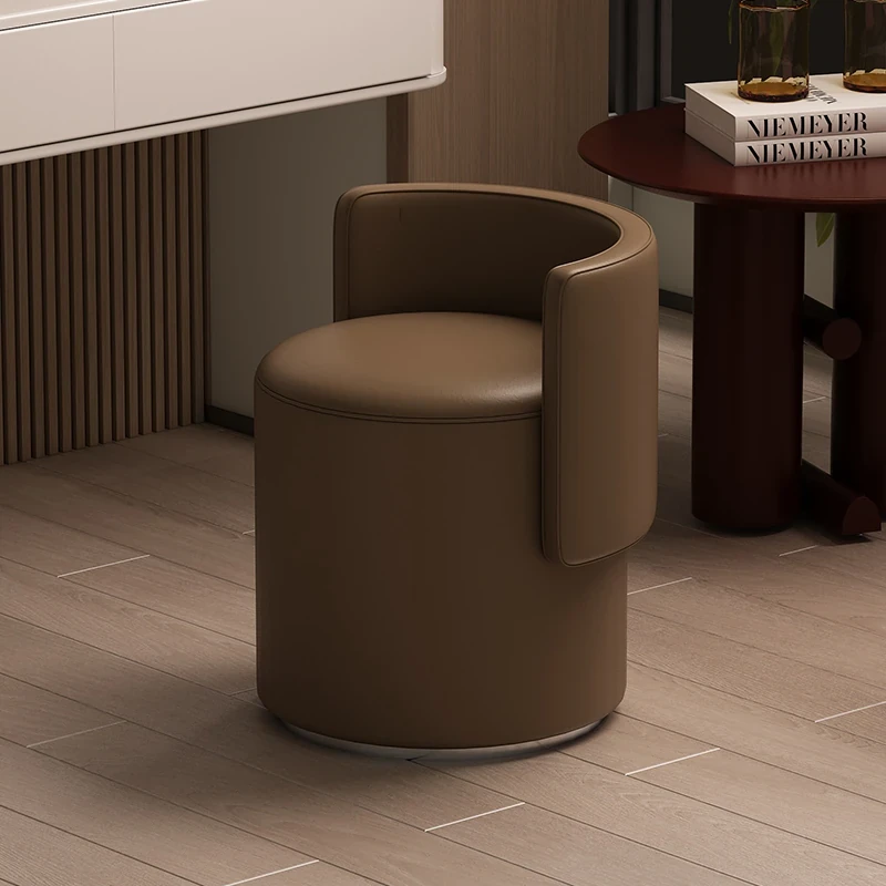 Rotatable Genuine Leather Makeup Stool - Compact Design for Small Spaces, Nordic Chic Vanity Chair for Bedroom, 2025 New Style with Minimalist Luxury Touch