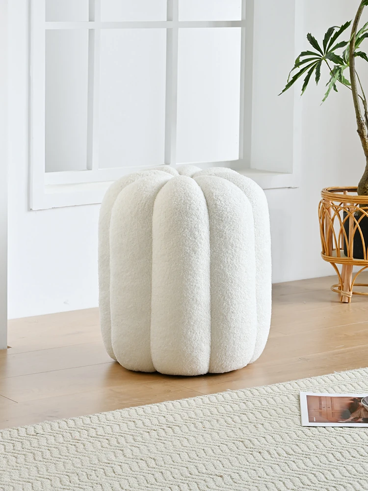 Cozy Lamb Fleece Makeup Stool - Stylish Entryway Shoe Bench, Versatile Living Room Ottoman, Soft Fabric Round Footrest Chair for Home Use