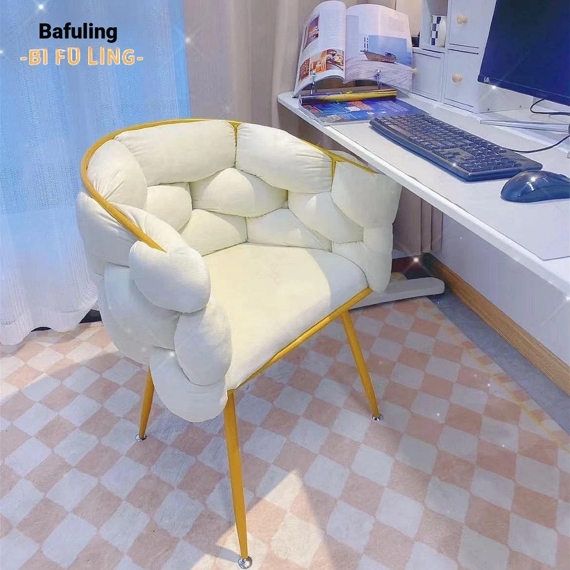 Elegant High-End Influencer Makeup Chair - Stylish and Comfortable Reclining Chair for Home Use, Perfect for Bedrooms, Nail Art, and Vanity Stations.