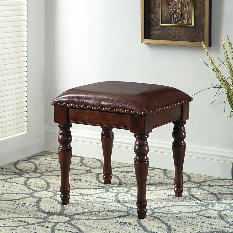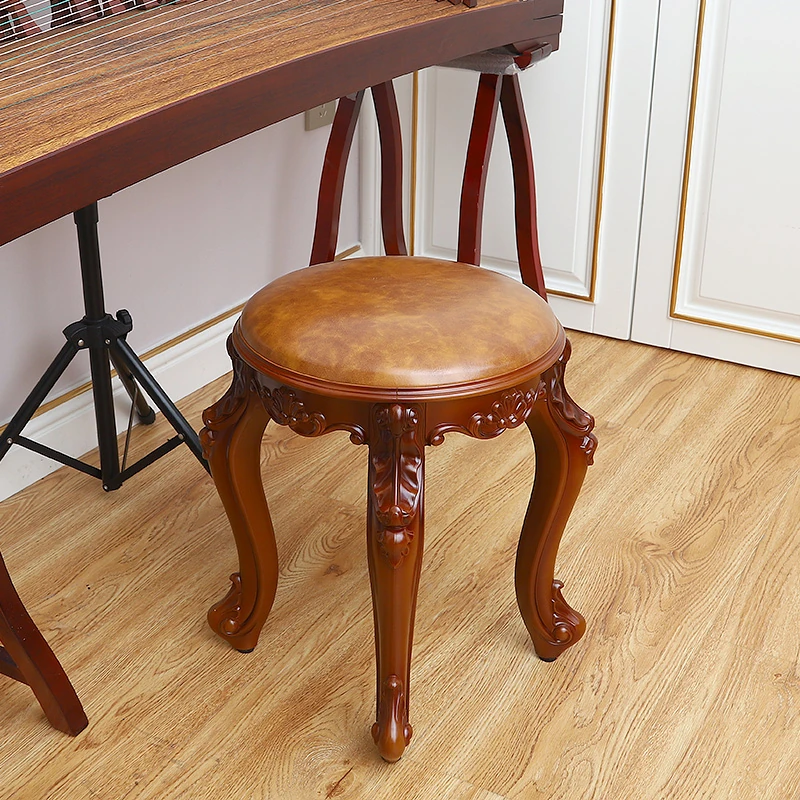 Elegant European-Style Makeup Stool - Vintage Dressing Table Chair, Perfect for Nail Art, Piano, Rustic American Shoe Bench, Guzheng Stool - Minimalist Design for Every Home
