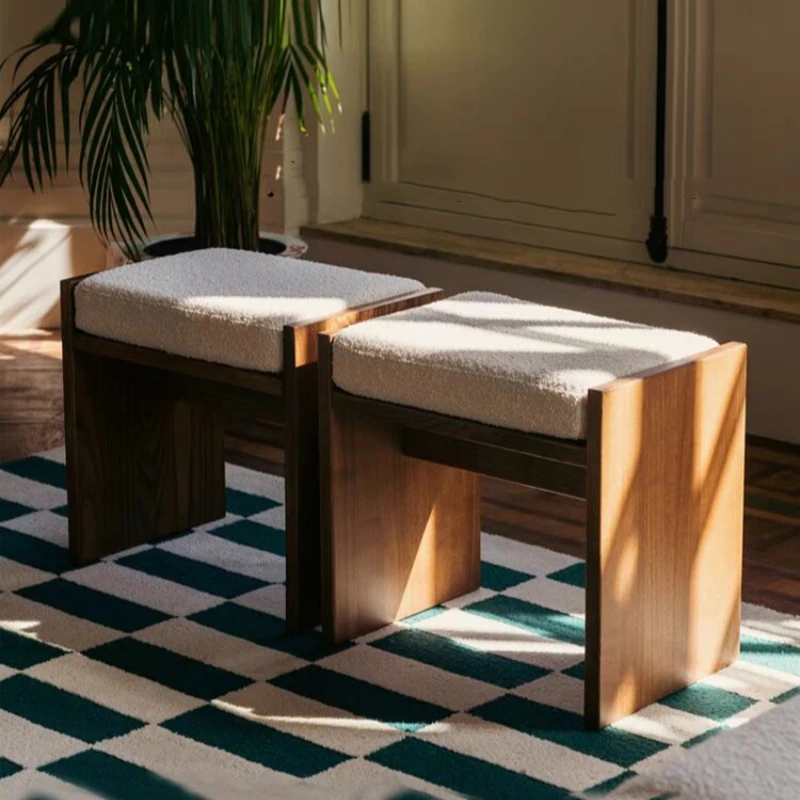 French Style Solid Wood Sofa Stool - Versatile Home Shoe Bench, Bedroom Bedside Stool, Makeup Stool, Perfect for Designer Homestays and Relaxation Spaces.