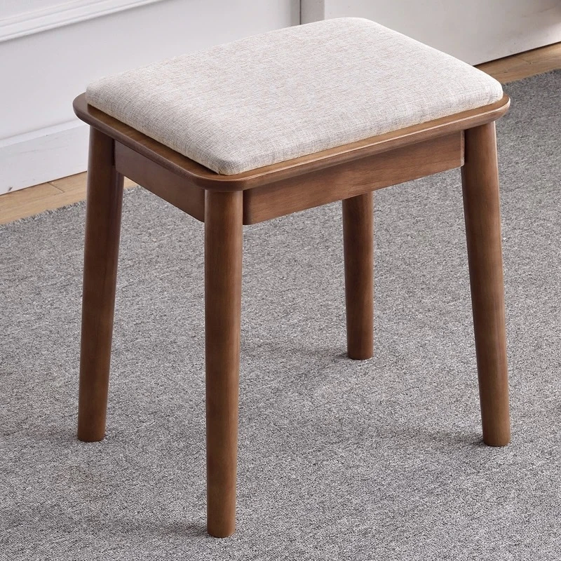 Elegant Solid Wood Vanity Stool - Modern Minimalist Chair for Bedroom and Writing Desk, Upholstered Small Square Stool, Nordic Style Makeup Bench
