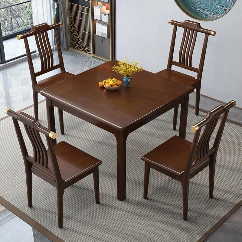 Modern Chinese Style Rectangular Dining Table Set for Small Spaces - Minimalist Solid Wood Dining Table and Chairs Combo for Home and Restaurants