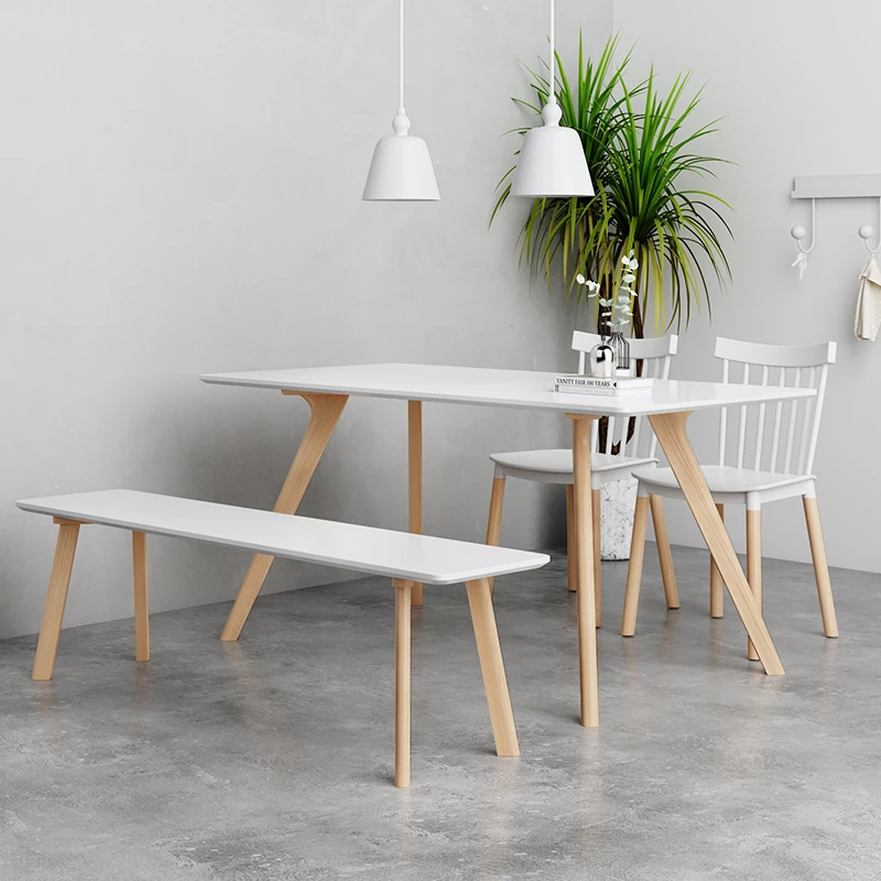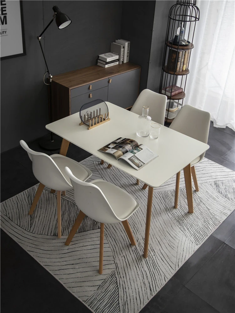 Modern Minimalist Nordic Dining Table and Chair Set for Small Spaces - Rectangular White Solid Wood Table for Home Dining Room