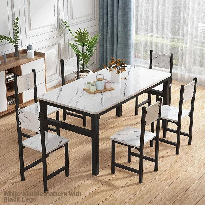 Modern Compact Dining Set for 4-6 People – Minimalist Rectangular Table and Chairs for Home, Perfect for Quick Meals or Restaurants