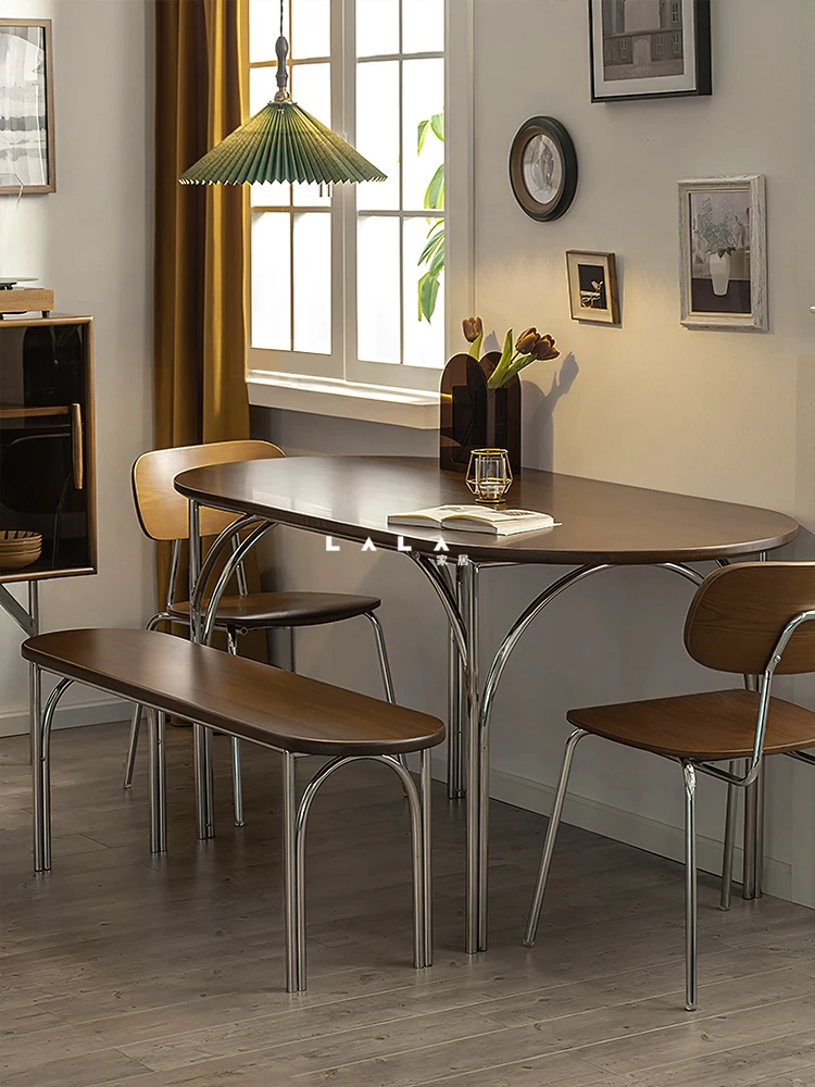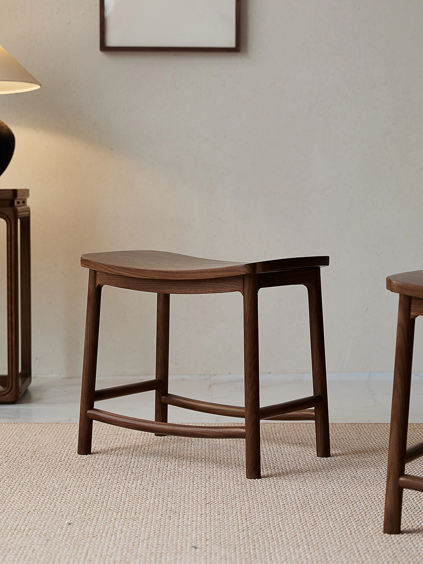 Sipu Mountain New Chinese Style Solid Wood Dining Table and Stool - Versatile Makeup Stool and Shoe Bench in Black Walnut Finish for Home Use