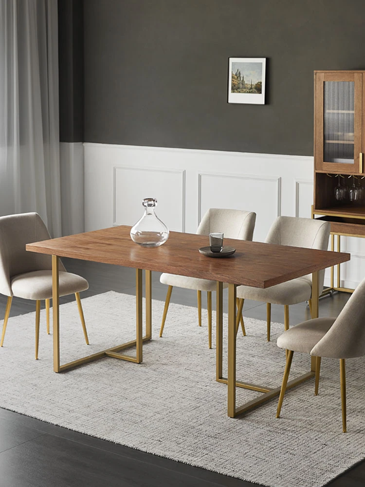Nordic Minimalist Luxury Solid Wood Dining Table - Modern Rectangular Table for Home, Retro Industrial Style, Perfect for Dining or Office Use