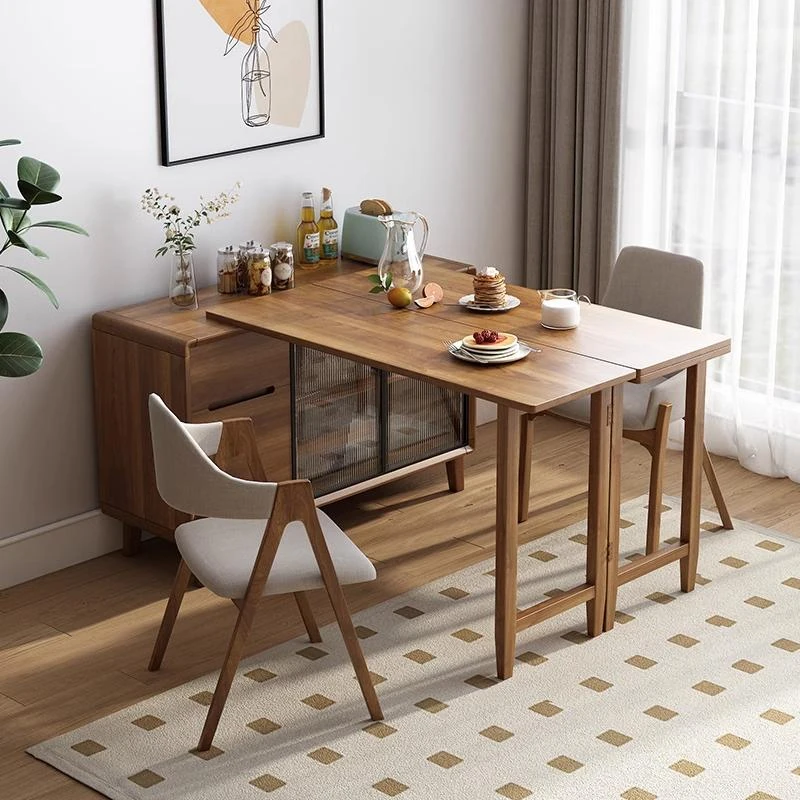 Free Shipping to Hong Kong: Stylish Solid Wood Folding Dining Table & Sideboard Combo - Perfect Space-Saving Storage Solution for Small Apartments! Ideal for Wall-Mounted Use!