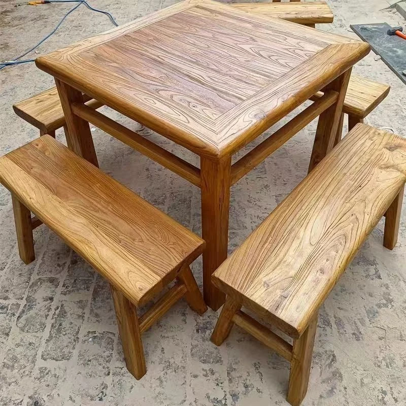 Antique-Style Solid Elm Eight Immortals Table - Versatile Square Dining, Bar, or Writing Desk for Guesthouses and Home Decor