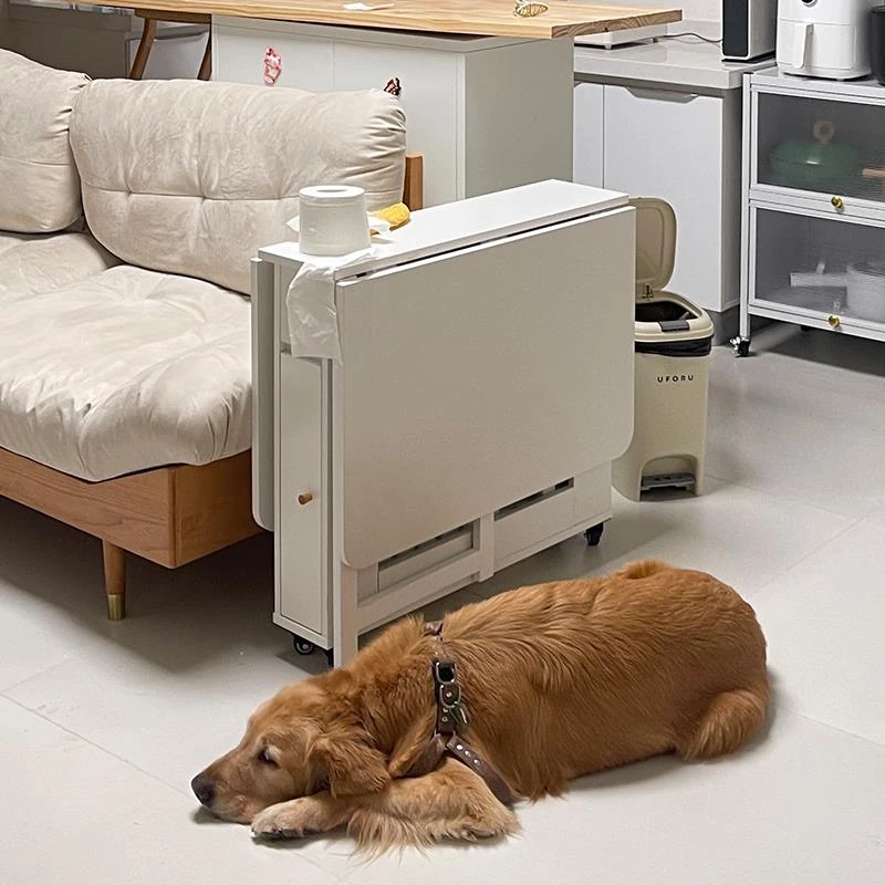 Creamy Minimalist Folding Dining Table for Small Spaces - Modern Rectangular Expandable Table for Home Use, Multi-functional and Easy to Store