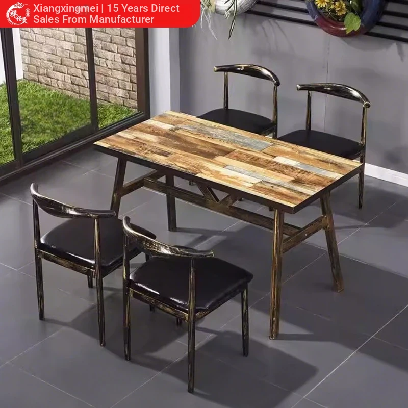 Affordable Retro Dining Table and Chair Set for Snack Bars, Breakfast Cafes, Noodle Shops, and Hot Pot Restaurants - Perfect for Commercial Use!